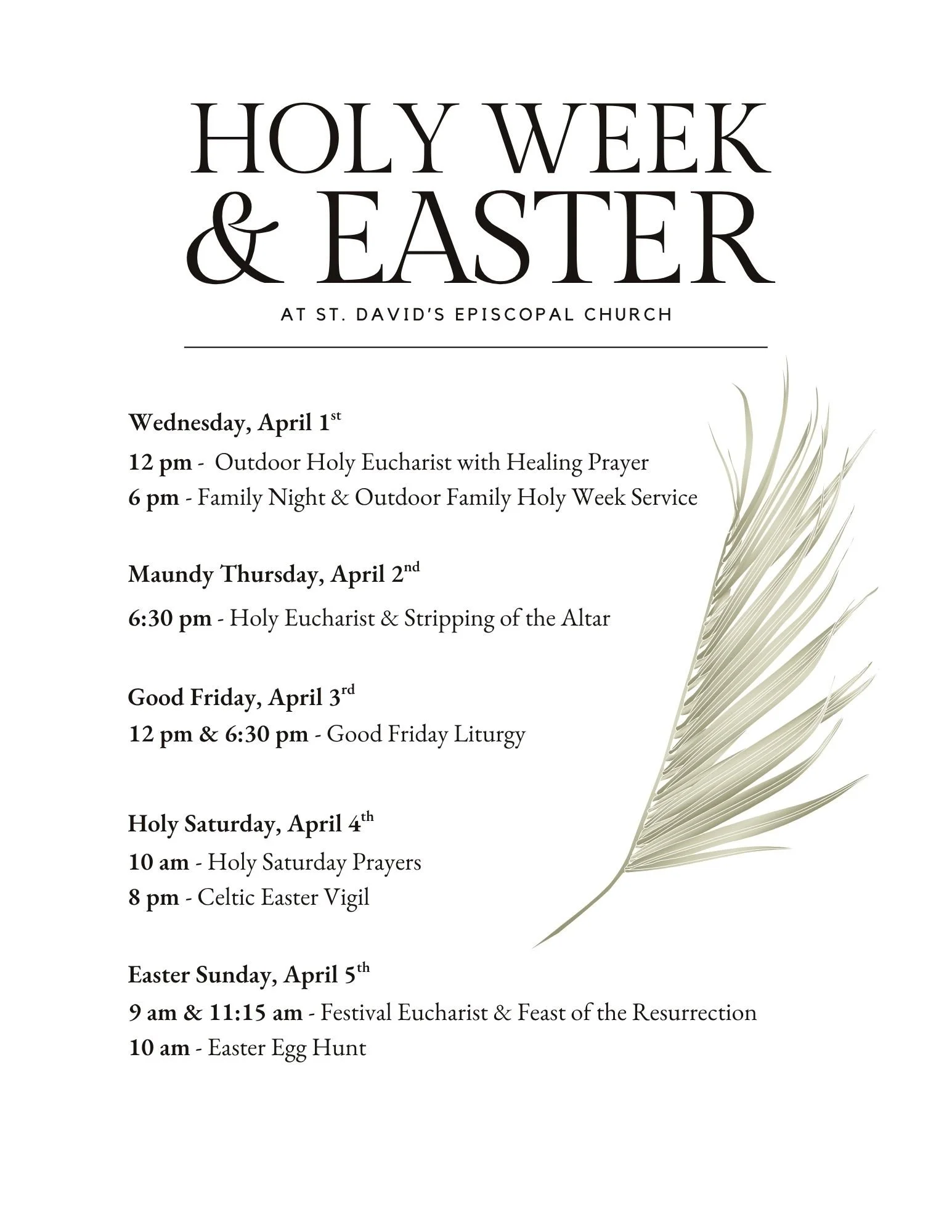 5:00p.m. Saturday Evening Prayer* - Outside (when daylight saving time is not in effect, in the fall and winter, this service is at 4 p.m.)